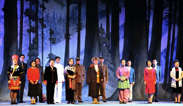 整场演出的第一个高潮出现在《沙家浜》联唱上,万洛民、栾晓丽、林莉华、张大炜、朱小苏、陈敏涛、李宏七名律师轮番粉墨登场。姑且不论精美的唱腔,单就扮相而论,足可让人眼前一亮。最引人注目的是张大炜律师的胡传魁,身材比专业演员还要大上一号,在台上气势不凡。林莉华律师的阿庆嫂字正腔圆、朱小苏律师的刁德一举重若轻,从中看出都有比较丰富的舞台经验且经过认真排练。经典不愧为经典,那一段段优美的旋律、一幕幕熟悉的场景,让人百听不厌、百观不烦,这也许就是艺术的力量吧!紧接着是律协副会长黄绮的《江姐》红梅赞,歌喉嘹亮、台风稳健;李薇老师的《杜鹃山》选段短小精悍、一气呵成;钟颖律师的《黛诺》选段,借鉴了少数民族的音乐旋律而又不失京剧的特色,这是一段非常别致的唱腔;钱军亮律师是律师京剧社唯一的乾旦,也是京剧社每次演出的一个亮点,这次他演唱的是《红云岗》选段“熬鸡汤”,虽然是第一次以程派演绎,却是唱得情深意长、委婉动听,完美地挑战了自己一把;改妆后,钱丽萍律师又唱了《平原作战》中的一段老生唱腔,显示出她多方面的艺术才能;万洛民律师二度登台,演唱了《红灯记》中的核心唱段“雄心壮志冲云天”,他义薄云天的亮嗓博得观众阵阵喝彩;最后一个节目是陈敏涛律师的《智取威虎山》选段“穿林海……”,把整场演出推向了最高潮。陈律师家学渊源,非但嗓音高亢、歌喉老到,而且身段边式、载歌载舞,使观众们赞叹不已。