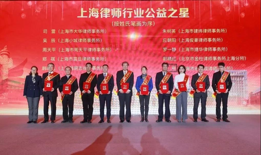 2020年1月2日下午,在锦江小礼堂举行的“纪念律师制度恢复重建40周年大会”上,向首届上海律师履行社会责任主题宣传活动评选出的“上海律师行业公益之星”“上海律师行业履行社会责任先进集体”以及“上海律师行业履行社会责任典型案例”获得者个人及集体进行了颁奖。这也标志着为期3个月的首届上海律师履行社会责任主题宣传活动落下帷幕。