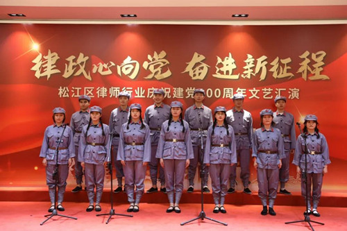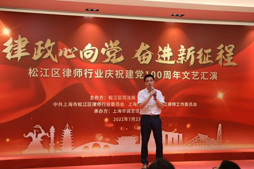 2021年7月23日,松江区律师行业在广富林街道三楼会议室隆重举行“律政心向党,奋进新征程”庆祝中国共产党成立100周年文艺汇演。