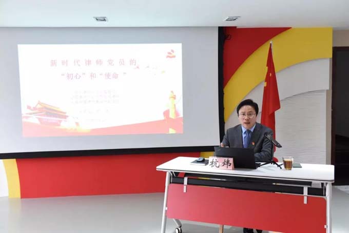 为进一步深入学习党的十九届四中全会精神,结合“不忘初心、牢记使命”主题教育,区司法局党委、区律师行业党委开展精品党课、主题党日示范点开放活动,邀请区律师行业党委委员、全国律师行业优秀党员律师、上海中夏律师事务所副主任杭炜律师,以“新时代律师党员的初心和使命”为主题,为全区律所党支部书记、部分党员律师上了一堂精彩专题党课。