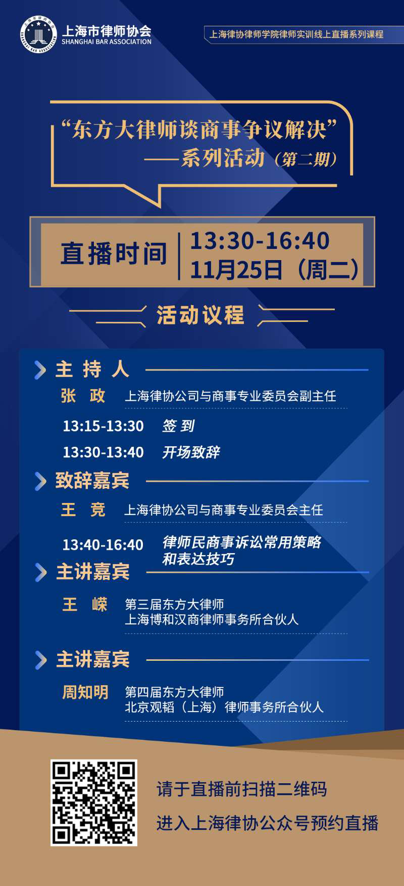 线下地点:上海律协报告厅(徐汇区肇嘉浜路789号35楼)