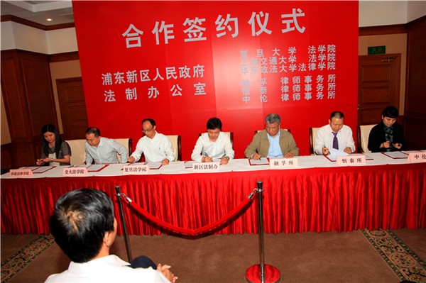 2013年6月28日,浦东新区人民政府姜樑区长会见了融孚所、中伦上海分所、恒泰所代表。盛情邀请三家律所参与浦东新区政府法律事务,苏惠渔教授、尹燕德律师向姜区长汇报了浦东政府法律顾问团工作情况,浦东法制办领导陈平介绍此次浦东新区人民政府法制办公室与律所合作的内容和形式。三家律所表示将在行政复议初审、参与自贸区制度和陆家嘴金融城相关制度建立、完善行政处罚结果信息公开、行政执法调研、重大事件、重大诉讼处理、政府合同审查等多个方面派遣专业服务团队提供优质高效服务。浦东新区法制办同时邀请复旦大学法学院、交通大学法学院和华东政法大学法律学院为其政府法律事务的课题合作单位。