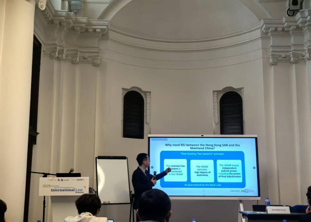 上午,香港大学郑家纯基金国际法教授、海牙国际私法会议亚太区办事处代表赵云教授以《判决公约》与香港/内地《关于相互认可和执行民商事判决的安排》为主题开展授课。赵教授系统梳理了海牙国际私法会议的机构定位、核心职能与全球布局,深入解读了《承认与执行外国民商事判决公约》及两地民商事判决相互认可执行安排的核心内容。授课中,他重点从适用范围、判决定义、可执行性原则及驳回情形等维度,对比分析了公约与安排的异同点,不仅深化了学员对跨境判决执行规则的专业认知,更有效拓宽了国际视野,强化了实务操作能力。