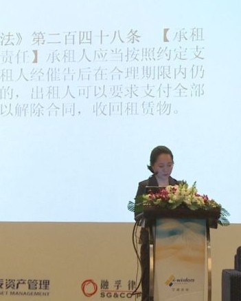 上海现代服务业联合会会长周禹鹏先生(上图左三)、融孚所主任苏惠渔教授(下左图)、广发证券资产管理(广东)有限公司总经理傅竹女士(上图左二)分别为本届论坛致致辞。融孚所高级合伙人吕琰律师(上图右二)就融资租赁资产证券化法律实务做了主题演讲;高级合伙人倪建林律师参与了嘉宾讨论,从外部律师的角度对融资租赁公司风险控制各环节提出专业建议。本届论坛还邀请了最高人民法院民二庭副庭长刘竹梅女士(下右图)解读了《融资租赁合同纠纷司法解释》,中国人民银行征信中心动产融资部总经理李红女士介绍了征信中心在推动租赁登记系统与租赁登记制度方面的进展和成效。另外,论坛还解读了上海自贸区针对融资租赁的多项鼓励政策、财政部和国税总局下发的106号文等融资租赁的最新动向;与会专家进行多个主题小组讨论解析2014年中国融资租赁市场,全面解读了租赁业现状及发展趋势,分享本行业经验在融资租赁业务中的应用。