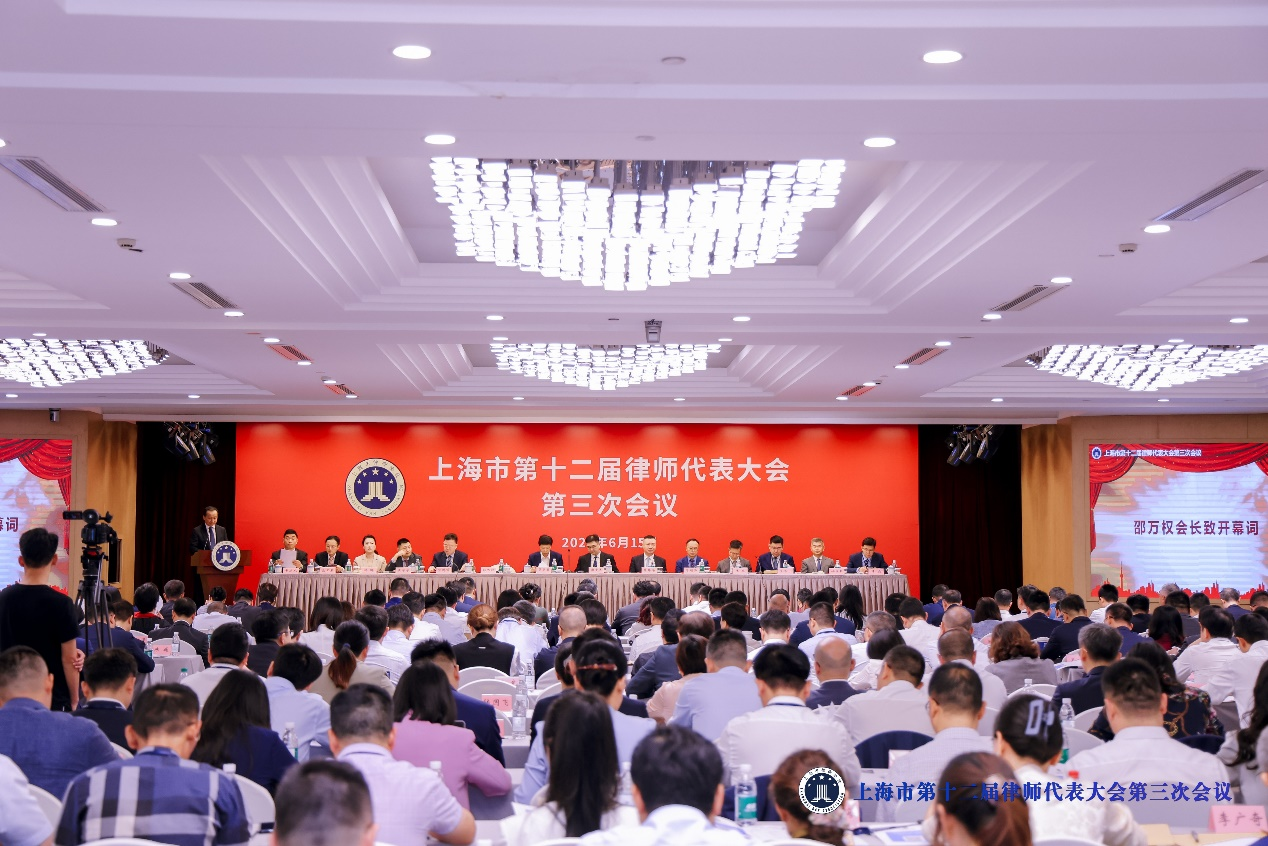 2025年6月15日,上海市第十二届律师代表大会第三次会议召开。上海市司法局党委书记、局长吴坚勇,上海市司法局党委副书记、市律师行业党委书记周文杰出席会议并讲话。上海律协会长邵万权作第十二届理事会2024年度工作报告。上海律协监事长朱林海作第十二届监事会2024年度工作报告。廖明涛副会长作财务报告和预决算说明。本市律师代表、嘉宾及媒体记者300余人参加。徐汇区司法局党委书记、局长左静鸣,党委委员、副局长杨佳琛作为特邀代表应邀出席。