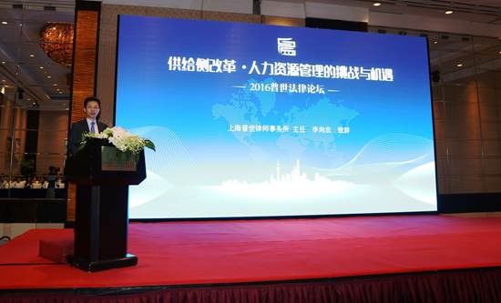 2016年9月21日,上海普世律师事务所携手华东师范大学法学院社会法治与公共政策研究中心联合主办的主题为“供给侧改革对人力资源管理的挑战与机遇”的大型法律论坛在上海新发展亚太万豪酒店正式拉开帷幕。