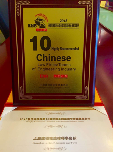 近日,建领城达所再次入选美国《工程新闻纪录》(ENR)及建筑时报共同评选、发布的“最值得推荐的10家中国工程法律专业律师事务所”。