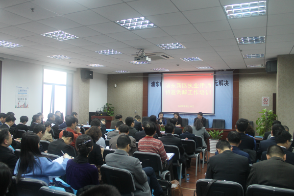 浦东法律服务业协会副会长孙彬彬主持了培训活动,浦东法院法官、调解专家和仲裁专家应邀分别为特邀律师调解员传授调解技能。