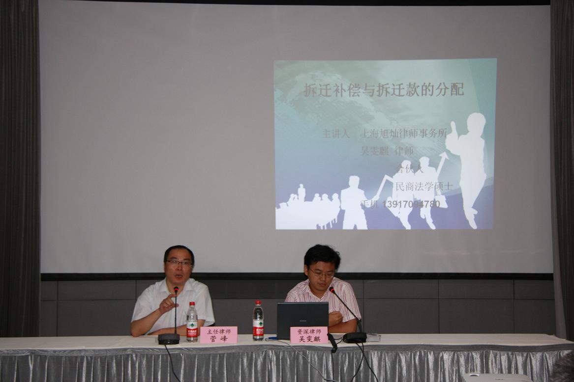 “旭灿讲坛”第二弹《动拆迁法律讲座(上)》由上海市旭灿律师事务所 菅峰主任律师主持,资深律师吴雯麒主讲。针对上海城镇房屋动拆迁法律实务进行普法活动。