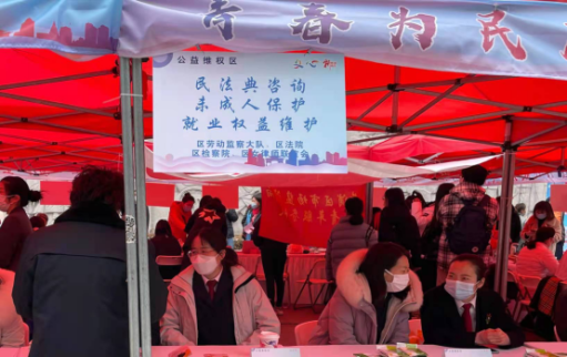黄浦区女律师联谊会委派了华夏汇鸿律师事务所夏帆、北京岳成律师事务所上海分所刘晓雷两位女律师为群众提供了法律咨询并发放了由区妇联组织、区女律师们撰写的关于妇女维权的普法宣传手册。