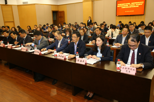 10月30日上午,上海市黄浦区律师行业党校、上海市黄浦区律师学院成立仪式暨区司法行政系统“不忘初心 牢记使命”主题教育党支部书记轮训班在黄浦区政府四楼多功能厅举行。市司法局党委副书记、市律师行业党委书记刘卫萍,黄浦区委常委、区委政法委书记吕南停,黄浦区司法局党委书记、局长刘辉,黄浦区委党校常务副校长陈黎红,市司法局律工处副处长张铭,市律师协会副会长朱林海、曹志龙,黄浦区社会工作委员会副书记韦心磊等出席活动,黄浦区律师行业党委委员、区司法行政系统基层单位及各律师事务所党支部书记、区律师工作委员会委员等近百人参加活动。会议由黄浦区司法局党委副书记、区律师行业党委书记王忠主持。