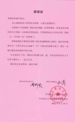 国浩所管建军律师向华政抗疫基金捐款,助力闭环管理期间的华政松江校区广大师生共渡难关。