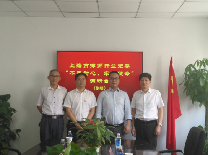 8月15日,市律师行业党委委员、纪委书记吕琰带队到崇明区开展“不忘初心、牢记使命”主题教育专题调研。崇明区司法局党组书记、局长时枫,副局长吴胜忠,监督科、公管科、律师行业党总支书记、律所党支部书记、无党员律所行政主要负责人、党建工作指导员等参加调研。