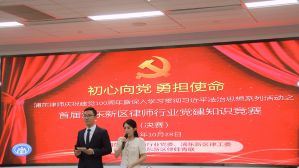 2021年10月28日下午,以“初心向党,勇担使命”为主题的浦东律师庆祝建党100周年暨深入学习贯彻习近平法治思想系列活动之首届浦东新区律师行业党建知识竞赛(决赛)在浦东新区党建服务中心主题教室成功举办。