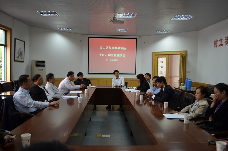 10月21日,区律工委组织各律师事务所主任、副主任召开座谈会,会上首先学习了中共十七届六中全会精神;之后就如何落实区委办、区府办联合下发的《关于进一步发挥律师在法治政府、法治社会建设中重要作用的实施意见》进行了讨论,与会人员均表示文件的下发对宝山律师来说是一个机遇,同时这也对律师自身的素质提出了新的要求。