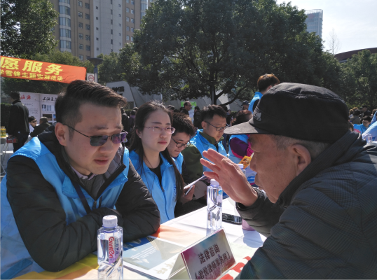 3月3日下午,长宁公证处、新华律师事务所、九州丰泽律师事务所、海汇律师事务所、君悦律师事务所共10多名法律志愿者在中山公园米兰广场参加“学雷锋、吾志愿”大型便民公益便民咨询服务。志愿者们耐心地解答了有关继承、房产、婚姻家庭、劳动争议、财产权属、遗嘱公证等方面的法律问题。