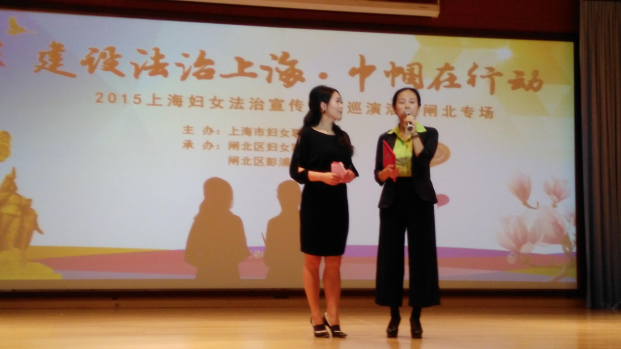 为进一步增强广大女性法治意识,切实维护女性合法权益,2015年9月29日下午,由上海市妇女联合会主办,闸北区妇女联合会、闸北区彭浦镇人民政府承办的“建设法治上海 巾帼在行动”2015上海妇女法治文艺宣传巡演闸北专场在闸北区彭浦镇文化活动中心举行,期间闸北区巾帼律师志愿团成立暨送法进社区活动正式启动。蓝白所楼凌宇律师、刘春雷所叶萍律师、宇钧所杨恕律师、光明所丁晓敏律师、君伦所张真律师、袁圆所张羚律师、恒建所沈惠珠律师、霖昂所陆秀芸律师、袁圆所黄蓓律师、瀛东所唐玲律师等10名闸北女律师受聘担任法治宣讲志愿者。