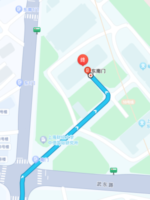 进校门:上海财经大学武东路校区西门,步行534米7分钟至培训教室