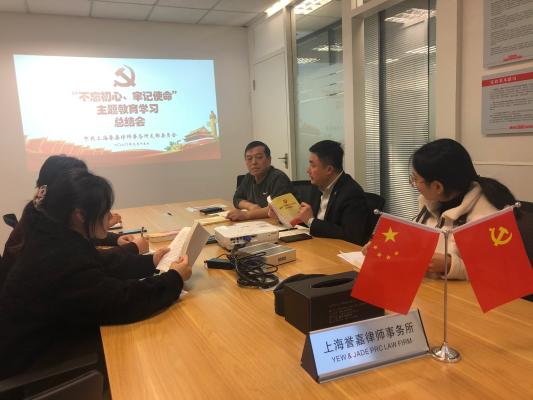 2020年1月15日,上海誉嘉律师事务所党支部组织全体党员参观“周公馆”、召开主题会议学习贯彻习近平总书记在“不忘初心牢记使命”主题教育总结大会上的重要讲话,开启2020年党支部建设新征程。主题党建活动得到律师事务所田原主任大力支持,并携本所律师全程参与。