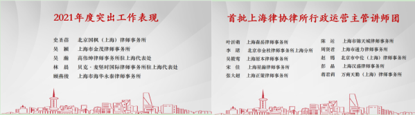 会议表扬了年度突出工作表现行政运营主管,并为首批上海律协律所行政运营主管讲师团讲师颁发聘书。