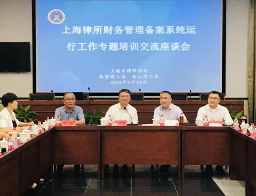 2022年9月14日下午,市律协副会长、上海市人大代表、民盟上海市委常委潘书鸿,市律协资产管理与财务委员会主任陈刚,市律协秘书长助理兼办公室主任陶丽萍一行来奉召开上海律所财务管理备案系统运行工作专题培训交流座谈会。