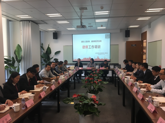 在调研座谈会上,俞卫锋首先代表全体律师感谢浦东法院及区司法局对律师工作的关心,法院领导带队深入律师行业开展调研,体现了法院和司法局对本区律师行业的高度重视。浦东律工委副主任杨伟东、陈峰、高照宇、张华、张玲,浦东法律服务业协会副会长孙彬彬,浦东律工委副秘书长奚正辉、徐晓辉,浦东律师团委书记韩璐,浦东司法局专调办主任沈东,上海法衡司法鉴定所主任张德雨等参加座谈会并发言,对法院立案、诉前调解、审判、执行等环节存在的不足,加强律师权利保障,进一步推进法律执业共同体建设,坦诚地提出意见和建议。法院相关职能部门负责人就有关问题作了回应。殷勇院长希望后续能与司法局和律工委建立定期沟通机制,并邀请律师事务所参与法院自贸区法庭创新项目共建。李宝令局长希望广大律师发挥法治建设的生力军作用,为营造更好的法治环境作出贡献。