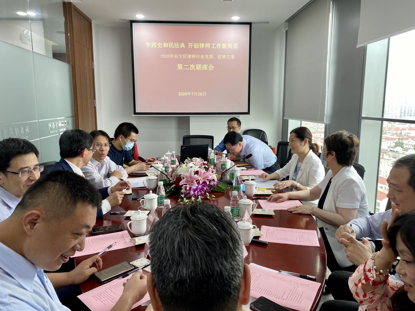 为扎实推进“四史”学习教育、“民法典”学习研讨工作,7月16日下午长宁区律师行业党委、长宁律工委在上海市新华律师事务所举办2020年度第二次联席会议。区司法局党委副书记、副局长,区律师行业党委书记金喆勋、长宁区律师行业党委委员、长宁区律工委组成人员共同出席了本次会议。