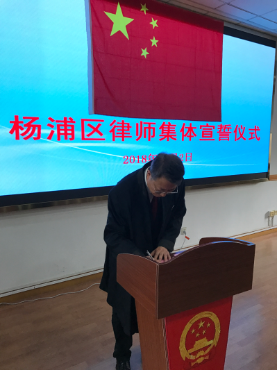 今年12月4日是第五个国家宪法日,12月2日至12月8日是我国第一个“宪法宣传周”。12月2日上午,在宪法宣传周的第一天,杨浦区举行律师集体宣誓仪式,活动设司法局主会场和20家律所分会场,全区300余名执业律师参加宣誓仪式。区司法局党委书记、局长陆静受邀参加主会场活动,副局长、律师行业党委书记周志宇主持,律工委主任厉明领誓。