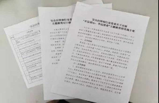 会议首先审议通过了《宝山区律师行业党委关于开展“不忘初心、牢记使命”主题教育的实施方案》《宝山区律师行业党委“不忘初心、牢记使命”主题教育对口联系基层党组织的有关安排》《宝山区律师行业基层党组织主题教育工作任务表》。