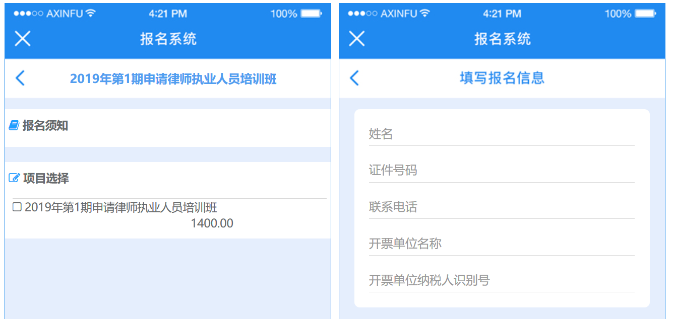 3、根据提示补全相关信息:(1)开具单位抬头的,请同时填写单位纳税人识别号(即“税号”);(2)开具发票抬头为个人或本人姓名的,仅需填写开票单位,纳税人识别号一栏内,填写“无”;(3)请各位学员发票单位信息时填务必认真,如学员填写时有误,请在办班后一周内联系班主任更改。按照学员填写信息开具的发票,一经开具不予更换。