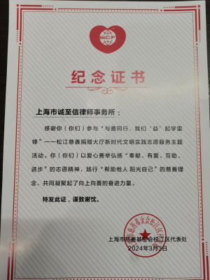 诚至信律师事务所将继续践行社会责任,为推动社会公益事业的发展贡献自己的力量,为社会做出更大的贡献。