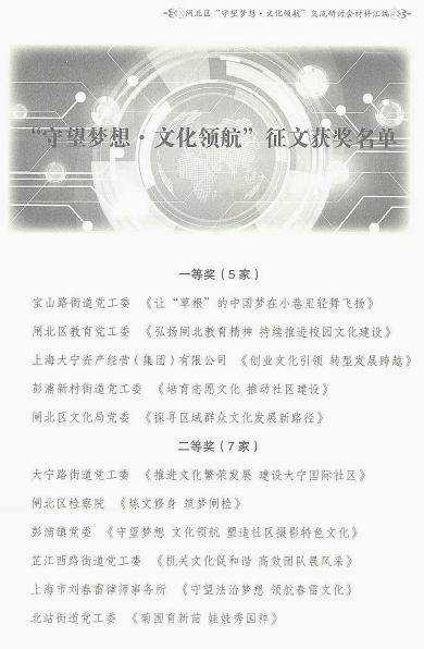 与会人员围绕“以文化为载体,推进新形势下思想政治工作”的主题,展开深入探讨和交流。会议表彰了在闸北区“守望梦想·文化领航”征文赛中获奖的单位。经逐级推选和评委会评定,共有50余篇征文参与最终角逐。刘春雷所撰写的《守望法治梦想,领航春雷文化》荣获二等奖。