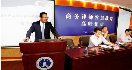 2013年7月13日,由时代商务(上海)律师事务所主办的“商务律师(上海)高峰论坛”在新利在线网35楼报告厅隆重举行。出席论坛的嘉宾有复旦大学法学院院长孙笑侠教授,上海政法学院终身教授倪正茂先生,华东政法大学国际金融学院院长程金华教授,时代商务(上海)律师事务所首席律师邱世枝先生;还有,来自长三角一百多位律师参加了本次论坛。