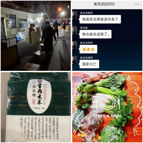 律师主动了解社区居民生活物资需求,积极联系农场,协调居委及运输车辆,为所在小区的居民订购了平价生活物资,解决居民尤其是老年人的“燃眉之急”。同时,律师积极参与群众生活物资的配送,为大家提供基本的生活物资保障,律师身体力行,以实际行动守“沪”这座城。