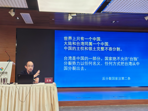 国防大学、上海市军民融合发展研究会战略研究室主任王强教授就“实现祖国完全统一的历史任务”做专题讲座。王强教授从台湾问题产生出发,围绕如何掌握两岸关系主导权主动权,如何抵御台独分裂和外来干涉图谋等多个角度,对推进祖国统一进程进行了全面系统的阐述,为围绕“进一步全面深化改革,推进中国式现代化”开展参政履职工作提供了清晰的思路,指出了明确的路径。活动现场提问环节,王强教授围绕如何把全会精神转化为推进祖统工作的强大力量,促进两岸经济文化交流合作,深化两岸各领域融合发展等方面进行了互动交流。