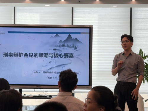傅建平律师以“刑事辩护会见的策略与核心要素”为主题,结合20余年刑事辩护经验,系统讲解了会见在刑事诉讼各阶段的重要意义、基本程序、具体内容及注意事项,助力律师提升辩护技能、防范执业风险。讲座内容扎实、实用性强,涵盖了从会见手续办理、沟通技巧到证据核实、庭审辅导等全流程要点,尤其对“两类案件”的会见及权利救济途径进行了深入剖析,获得在场听众一致好评。大家纷纷表示,通过此次学习,不仅增强了会见的规范意识,也更深刻理解了律师在保障人权、监督公权方面的重要作用。傅建平律师以“医者仁心,律者思方”为理念,传递了专业、尽责的辩护精神,整场讲座干货满满,反响热烈。