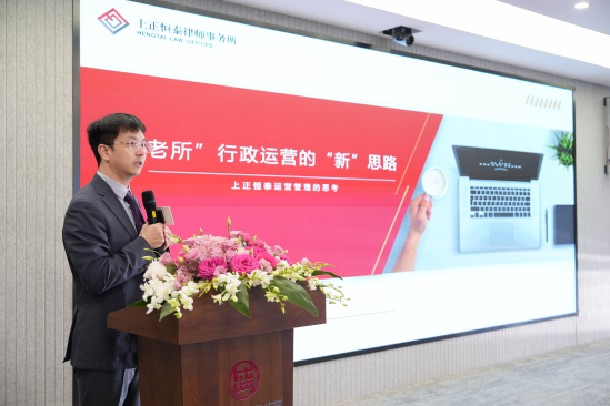 随后,上海上正恒泰律师事务所合伙人杨如意以“‘老所’行政运营的‘新’思路”为题进行分享。他从律所自身的组织转型出发,分享了在“管委会+执委会+行政团队”模式下如何推动制度重建、人才引进和绩效考核,强调行政应在服务与成本、规范与活力之间找到平衡,实现从事务支持向战略协同的转型。