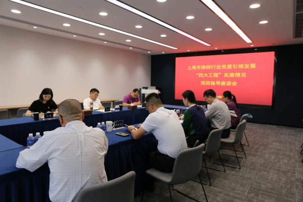 巡回指导组一行随后来到徐汇,对徐汇区律师行业“四大工程”推进实施情况进行调研座谈,听取区律师行业党委阶段性工作汇报和有关意见、建议。徐汇区司法局政治处副主任、区律师行业党委副书记梁蓓珏从加强思想政治引领、强化党员教育培训、打造司法行政领域金牌服务团队、推进律师行业党建提质增效等方面介绍了区律师行业党建工作,还重点介绍了具有行业区域特色的党建“孵化基地”有关工作情况。
