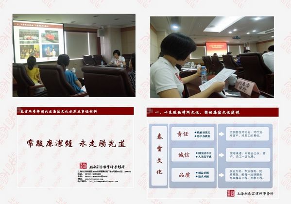 春雷所代表闸北区司法行政系统参评闸北区首批廉洁文化示范点