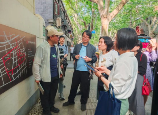 本次活动于下午2时在复兴中路516号(复兴公园南门)正式启动。全体参与党员佩戴党徽,沿着精心设计的红色教育路线展开徒步学习。2小时的行程中,党员们依次探访思南公馆、中共代表团驻沪办事处旧址(周公馆)、孙中山故居等12处红色地标,系统回顾了从党团诞生到国共合作、从民主革命到城市建设的百年红色脉络。