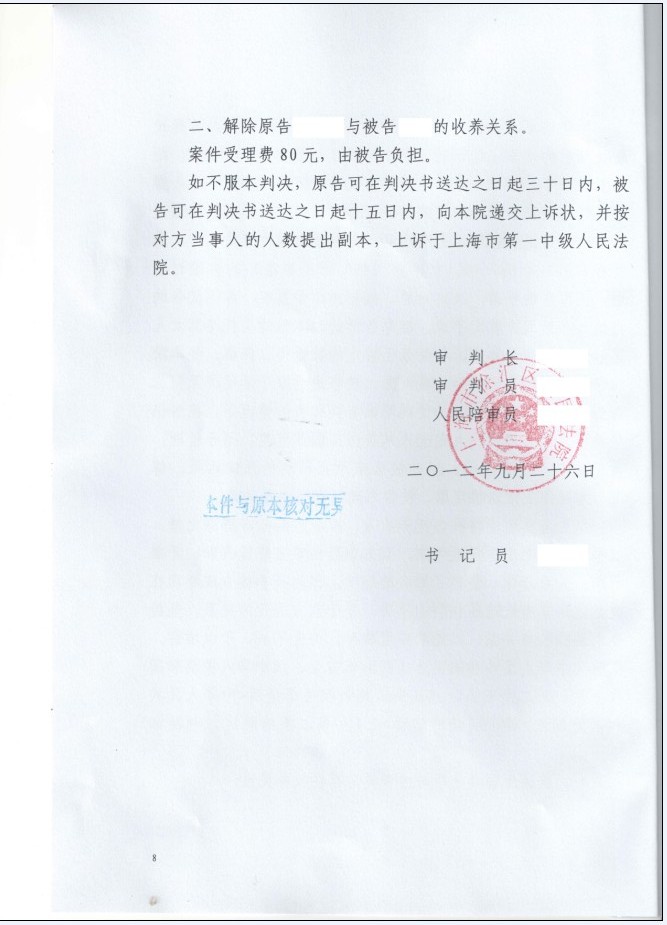 经过近十个月的审理,九月底,徐汇区人民法院就年届九旬的何老先生诉小女儿解除收养关系的案件,做出了支持九旬老翁诉讼请求解除收养关系的判决。