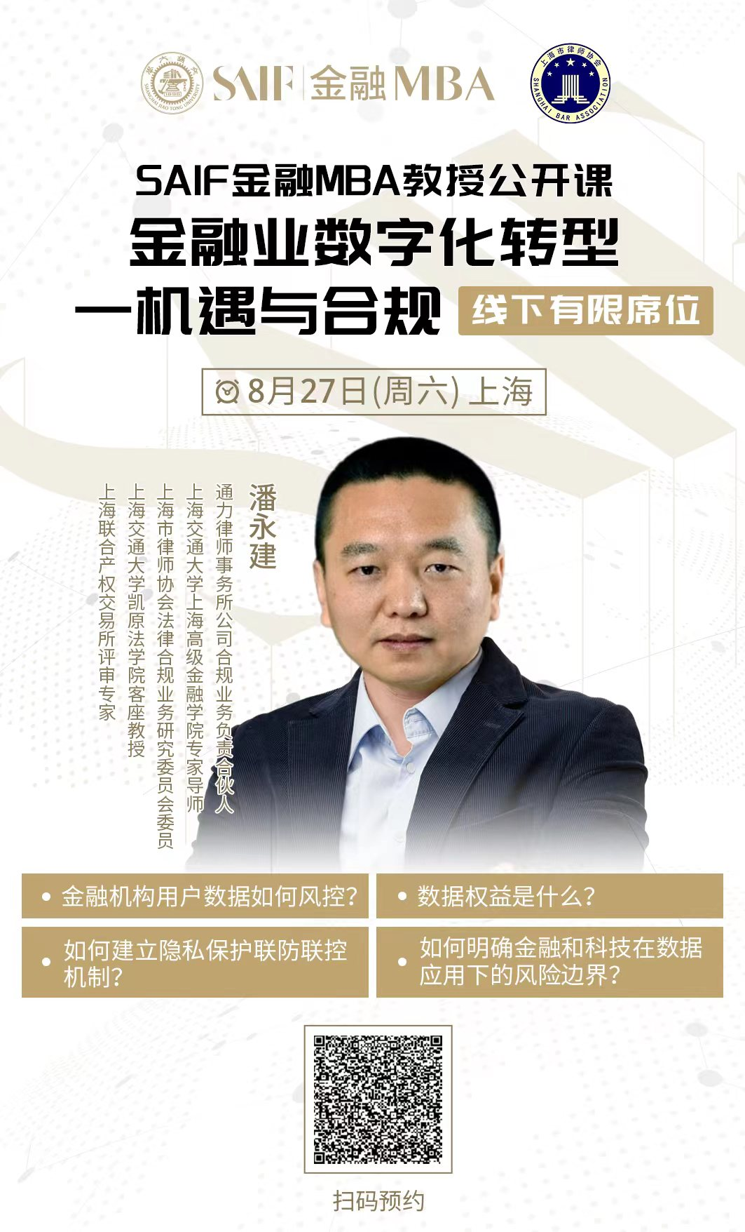 本次教授公开课《金融业数字化转型:机遇与合规》活动由上海高金金融研究院主办、上海律协法律合规新利体育网站委员会协办,带来当下行业发展最新洞见和最鲜活的实践案例的分享。具体安排如下: